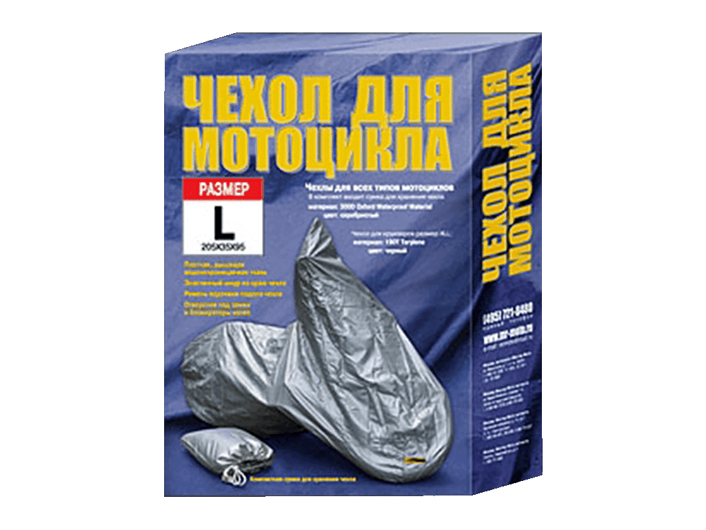 Чехол изготовлен из плотной, дышащей и водонепроницаемой ткани Oxford Waterproof Material серебристого цвета, плотностью 300D. При создании чехла был применен оригинальный крой с минимальным количеством швов. Чехол полностью водонепроницаем, все швы прошиты и дополнительно проклеены. В отличие от синтетических аналогов материал выдерживает незначительный нагрев, так что вы можете смело накрывать мотоцикл, через небольшой промежуток времени после завершения поездки.