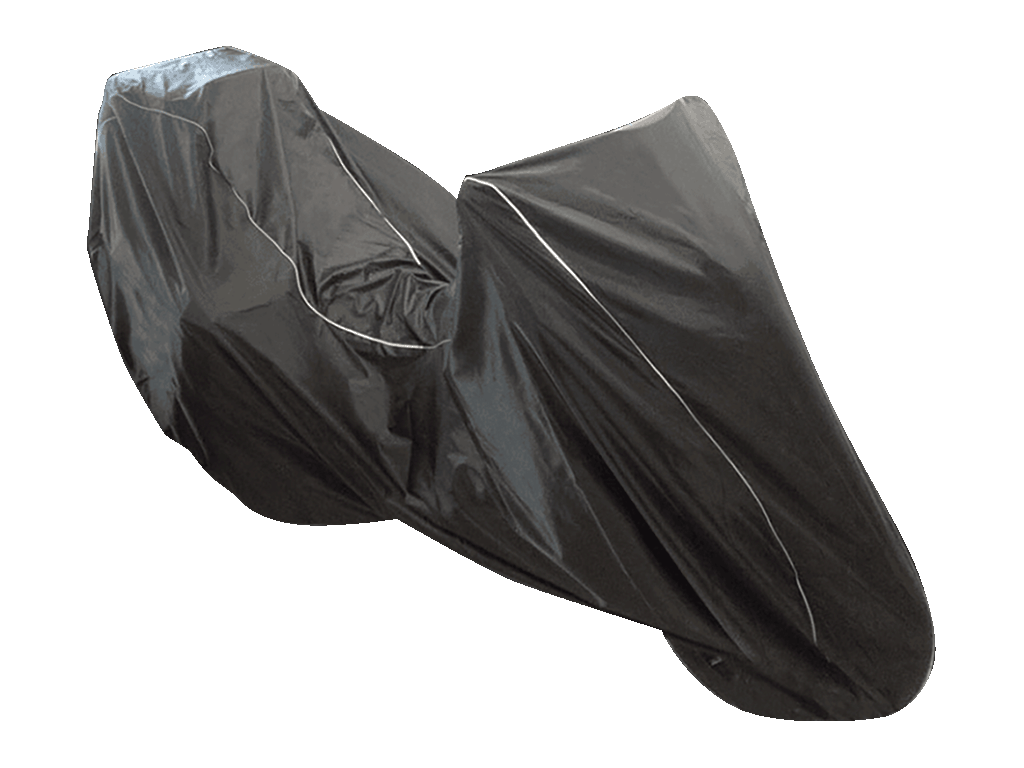 Чехол для мотоцикла из текстиля с утяжками, может применяться на мотоциклах как с боковыми кофрами, так и без них.