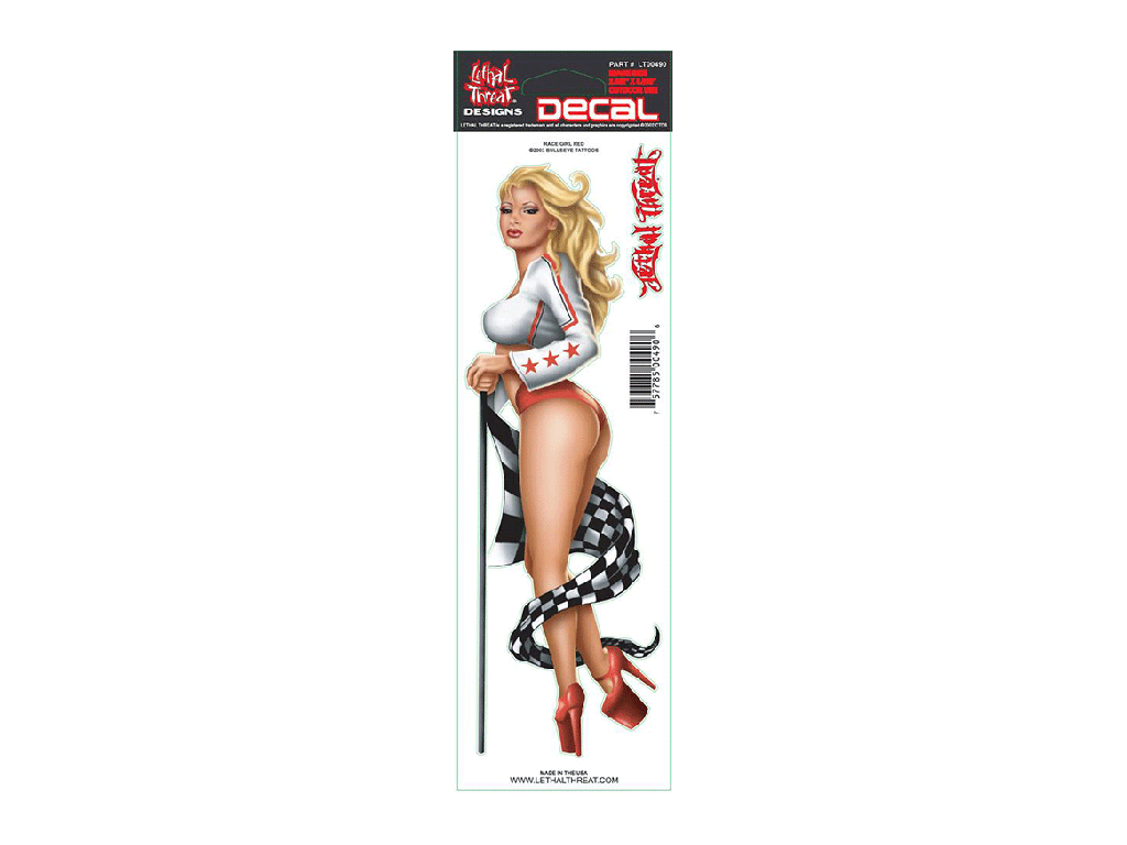 LETHAL THREAT Наклейка RACE GIRL RED 3*10IN