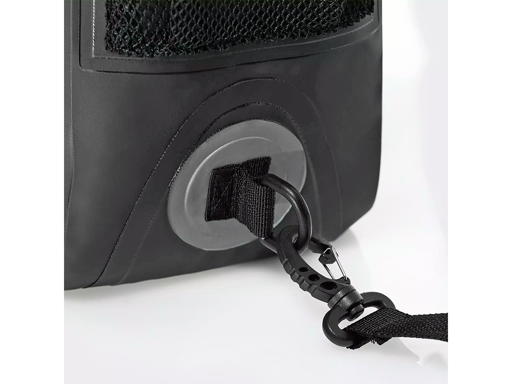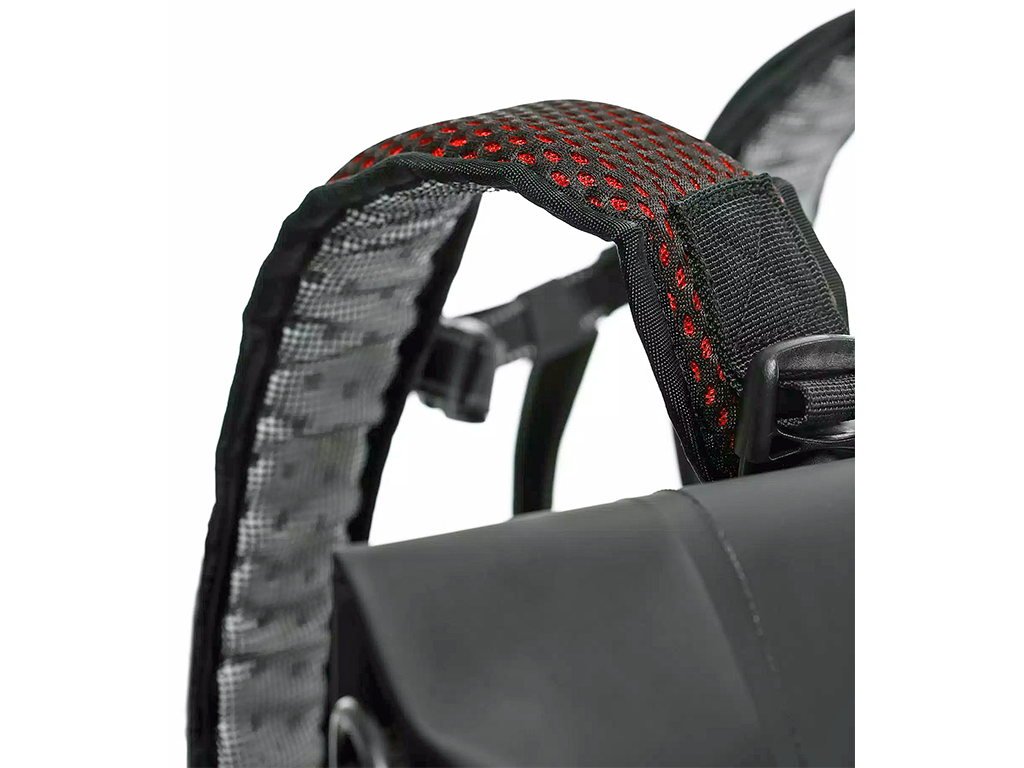 Конструкция продумана до мелочей. Рюкзак можно пристегнуть ремнями к мотоциклу. В этом случае наплечные лямки снимаются. По бокам - два открытых сетчатых кармана, в центре - один водонепроницаемый. Объем рюкзака - 15 литров. Внутреннее пространство оптимизировано таким образом, чтобы в него помещалось больше вещей и каждая находилась на своем месте. Есть ударопрочный внутренний карман.