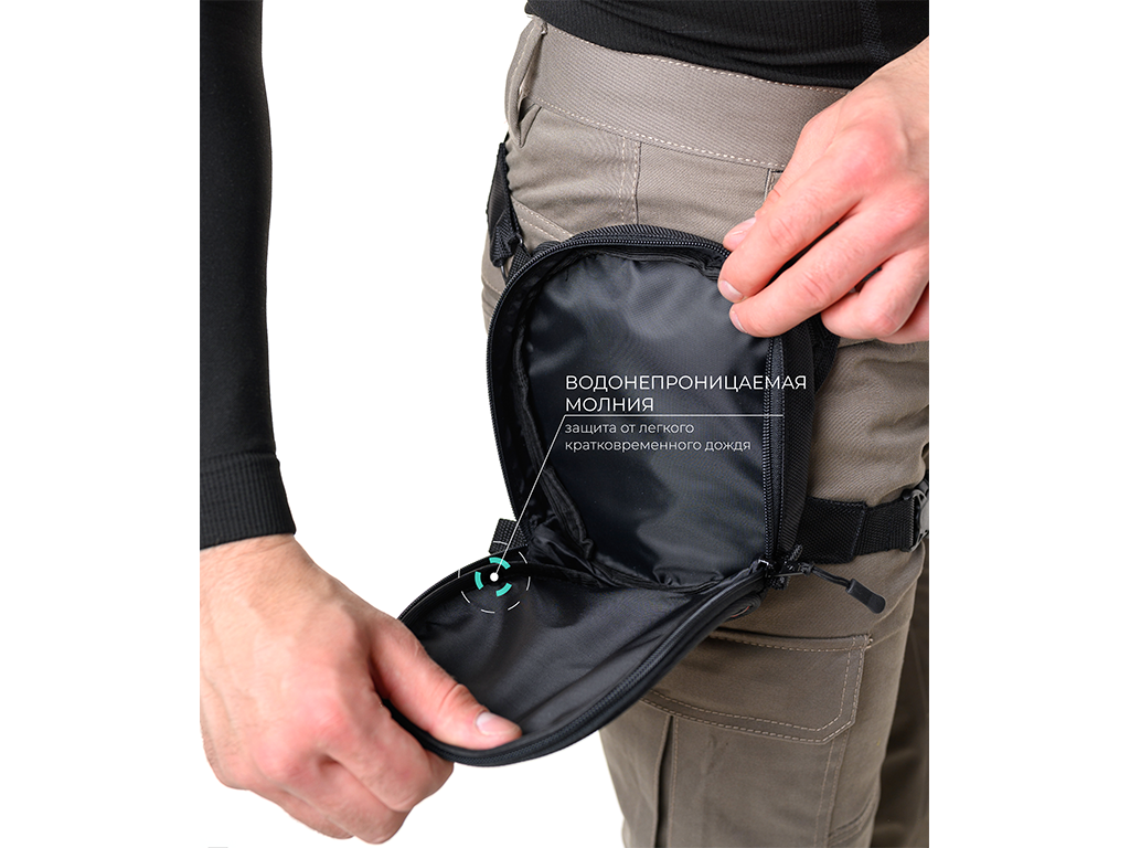 Сумка набедренная, предназначена для городского использования. 1 Карман. Полная защита от воды, влаги, грязи. Водонепроницаемая ткань, водонепроницаемая молния. Нитки с водоотталкивающей пропиткой. Светоотражающий элемент. Крепление в 2х местах - пояс, бедро. Возможно крепить к комбинезону или гражданским брюкам.