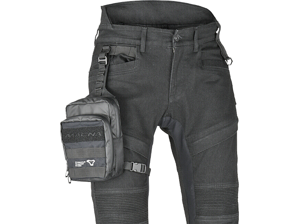 MULB-1 совместима с модульной системой крепления багажа P.A.L.S. На ней нашиты петли для быстрой установки дополнительных багажных аксессуаров. Сумка на бедро стыкуется с совместимыми брюками через петли, либо с обычными - ремнём из комплекта.
