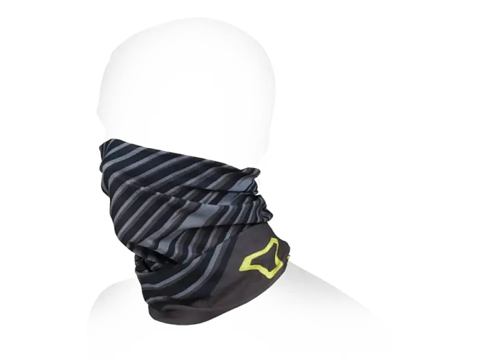 Бафф изготовлен из полиэстера и микрофибры. Он оснащен эластичными вставками и способен впитывать влагу, например, пот.