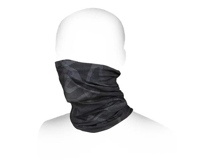 Бафф изготовлен из полиэстера и микрофибры. Он оснащен эластичными вставками и способен впитывать влагу, например, пот.