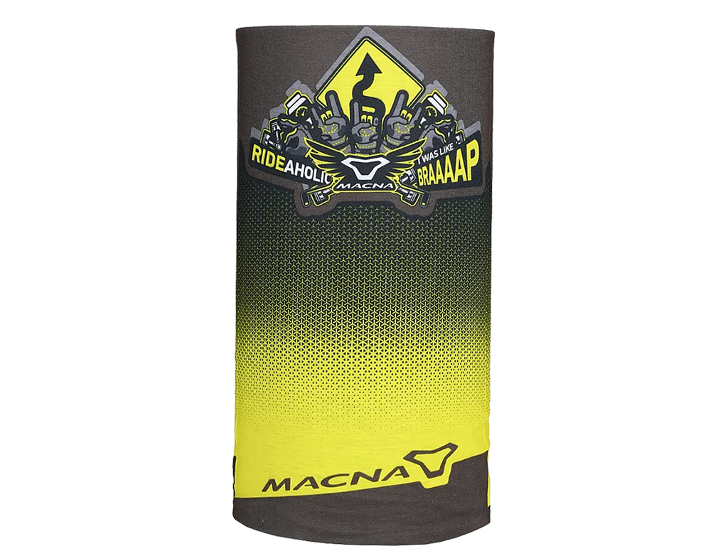 Бафф изготовлен из полиэстера и микрофибры. Он оснащен эластичными вставками и способен впитывать влагу, например, пот.