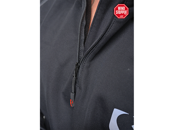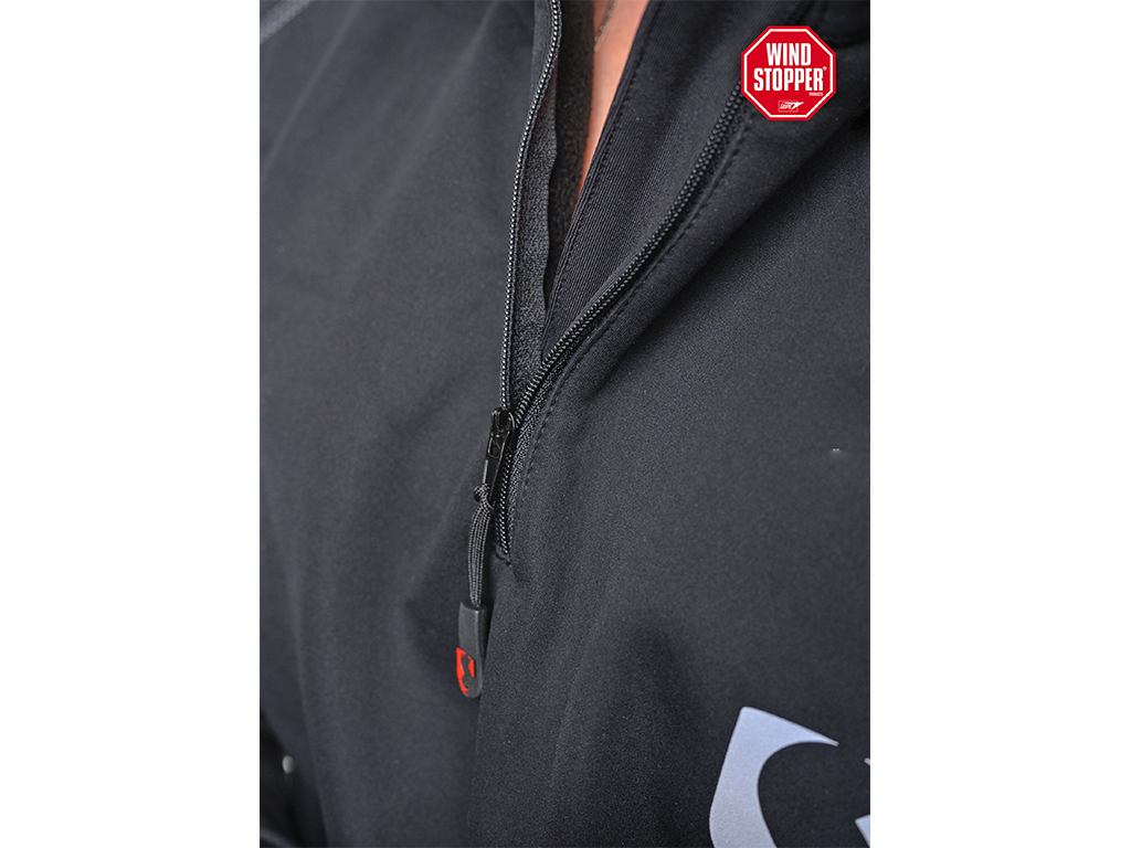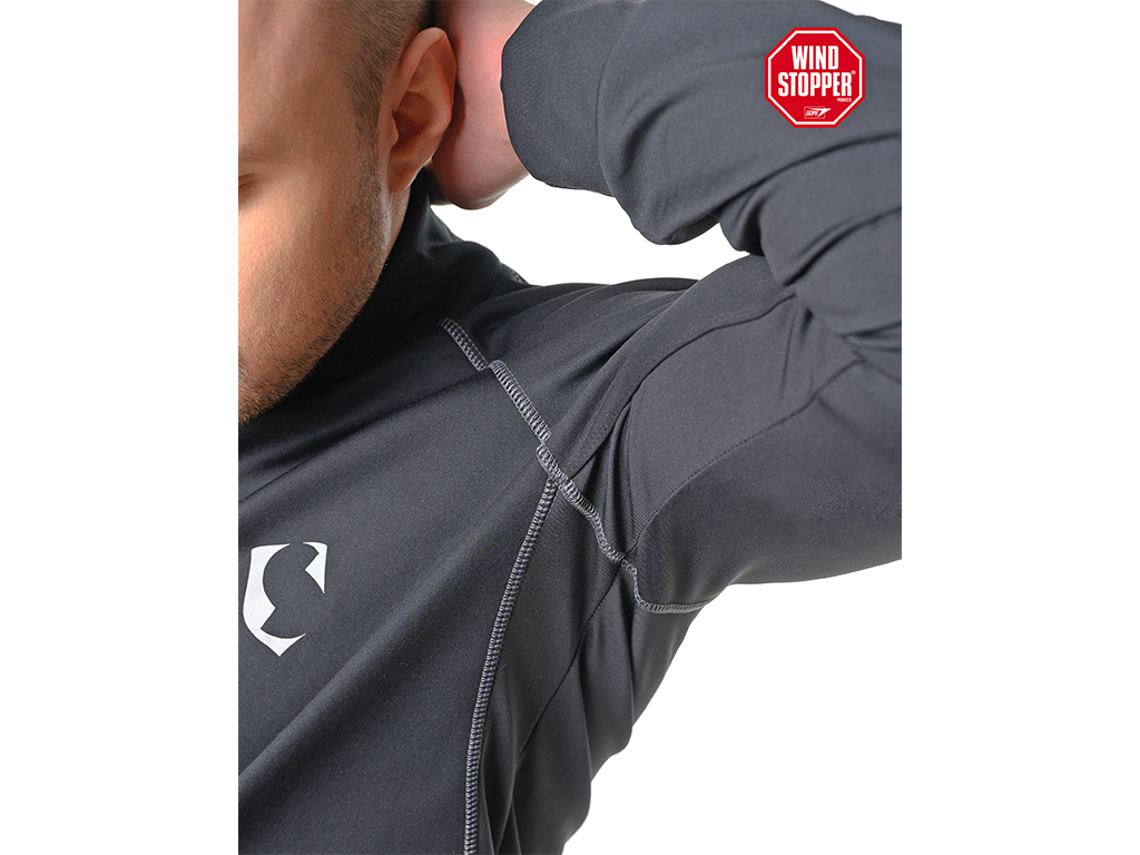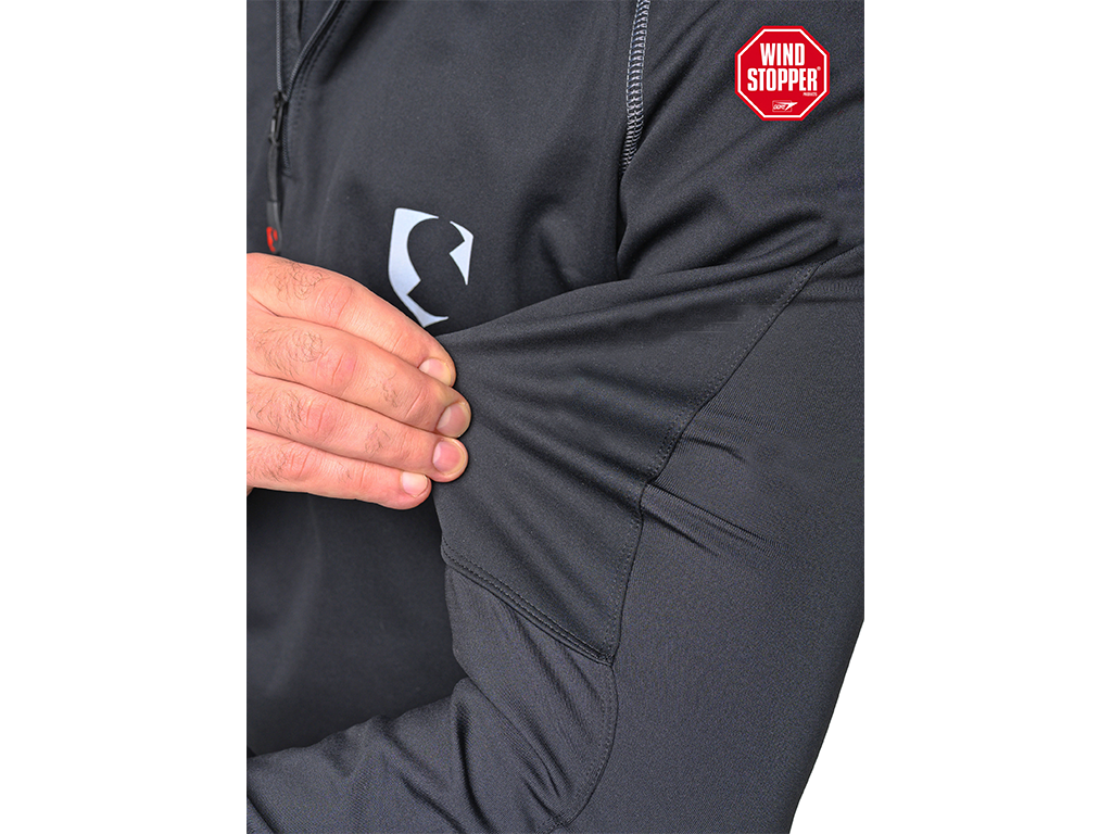 Важными деталями этой кофты являются виндстоппер и система "плоских" швов, которые не создают дискомфорта при движении.