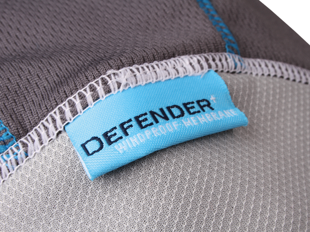 Внешний покровный материал термобелья Defender обеспечивает ветрозащиту и обладает высокими водоотталкивающими свойствами, имея водостойкую способность порядка 8000 мм.