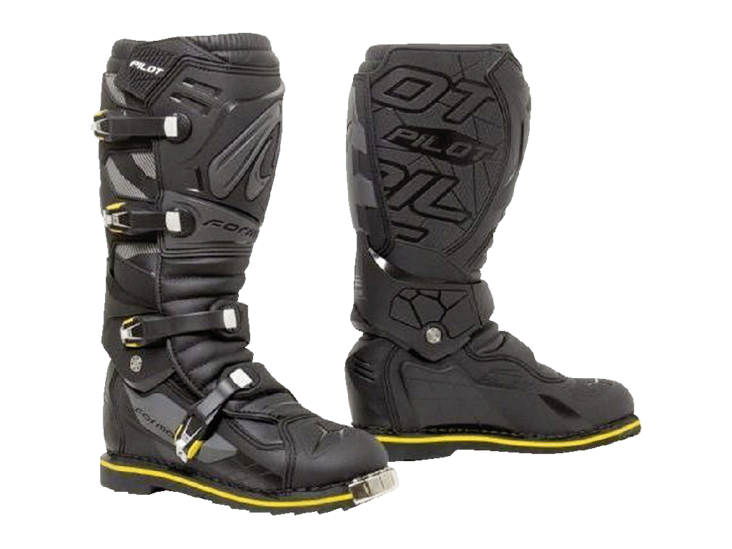 Кроссовые мотоботы Forma Pilot разработаны для занятий мотокроссом, эндуро и езды по бездорожью разной интенсивности. Отличаются мощной защитой. Для оптимального сочетания защиты и комфорта в районе голеностопного сустава установлена система шарниров. Она позволяет стопе двигаться по естественной траектории, при этом предохраняет от чрезмерного разгибания, сгибания и скручивания, приводящих к травмам. Также нога защищена от ударов и сдавливаний, возникающих при падении, пластиковыми и металлическими элементами.