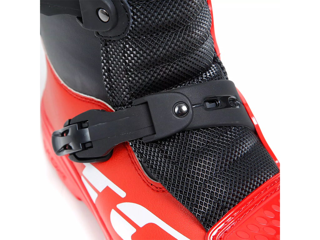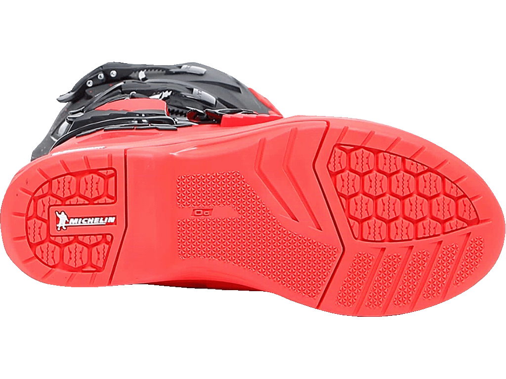 Ботинки для мотокросса и эндуро, с максимальной защитой, идеально поддерживающие лодыжку на каждом этапе катания, гарантируя оптимальный комфорт в течении длительных тренировок. Обувь Comp Evo 2 Michelin® отличается системой Double Flex Control — шарниром, расположенным в области лодыжки, который обеспечивает большую гибкость при, избегая риска нежелательного скручивания и перенапряжения. Защита имеется во всех стратегических точках, таких как голень, лодыжка, пятка и носок. Comp Evo 2 Michelin® включает в себя подошву Michelin® Hybrid MX со специально разработанным протектором и составом, обеспечивающим исключительное сцепление с подножками мотоцикла даже в неблагоприятных погодных условиях и на всех типах местности, включая самые экстремальные ситуации эндуро. Система крепления включает четыре полиуретановые и алюминиевые пряжки с микрометрической регулировкой. Внутренняя часть голенища оснащена панелями-липучками, поэтому посадку можно регулировать до миллиметра. Модель Comp Evo 2 Michelin® оснащена системой регулировки голени для дальнейшей адаптации посадки. Это позволяет установить переднюю пластину защиты голени в два разных положения. Подкладка из дышащей ткани и боковые вентиляционные отверстия сохраняют ноги сухими, обеспечивая максимальный комфорт.