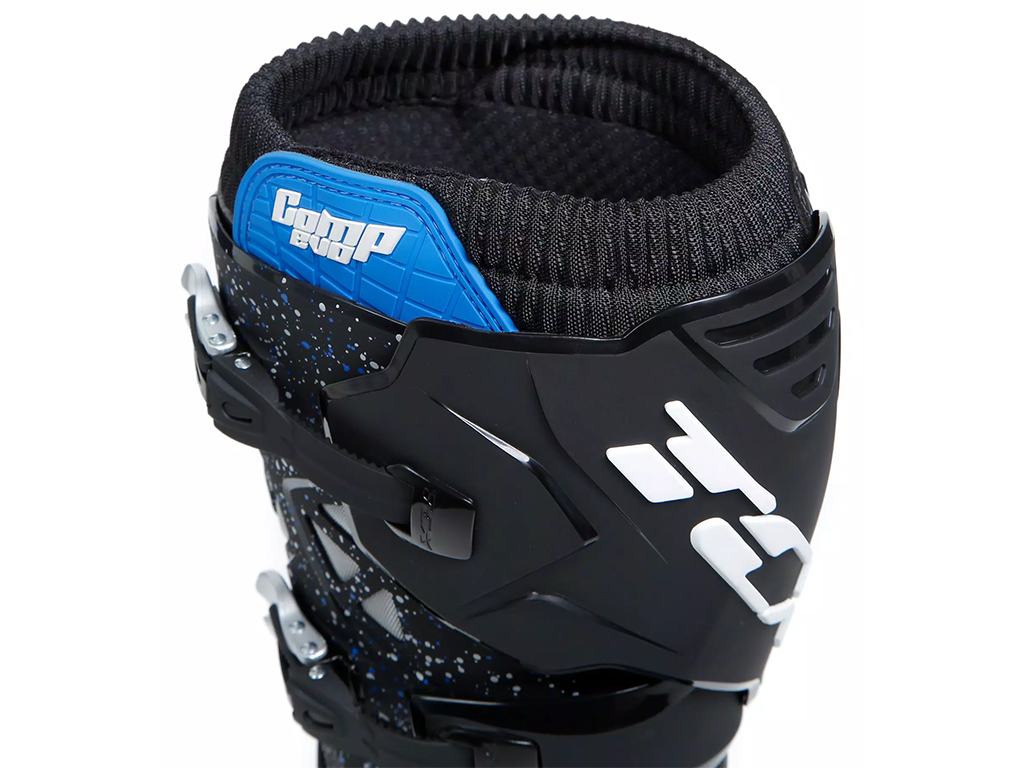 | СТРУКТУРА БОТИНКА Конструкция ног ботинок Comp Evo 2 включает полиуретановую защитную внешнюю панель и мягкий внутренний верх, разработанный для полного облегания ноги и обеспечения превосходного уровня комфорта. Верх из мягкой микрофибры идеально обхватывает икру, а двойная система застежек-липучек позволяет с высокой точностью регулировать посадку и идеально адаптировать ботинок каждого пилота. Верхний эластичный воротник предотвращает попадание гравия, пыли и грязи в ботинок, обеспечивая оптимальный комфорт даже в самых сложных условиях. | |