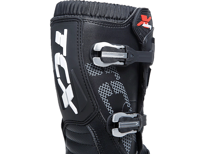 СИСТЕМА РЕГУЛИРОВКИ ЗАЩИТЫ ГОЛЕНИ Система регулировки защиты голени, являющаяся особенностью ботинок TCX Comp Evo 2, специально разработана для адаптации к разным размерам икры и позволяет легко устанавливать все типы защитных накладок. Используя подвижную полиуретановую пластину для голени на основе винтов, которые перемещаются внутри скрытых отверстий, система регулировки защиты голени обеспечивает полностью настраиваемую посадку: в зависимости от желаемого диапазона движения можно выбрать одну из двух различных настроек. Обеспечение идеального прилегания защиты голени является одним из наиболее важных условий при ношении внедорожных ботинок; важно, чтобы сапог не был слишком тугим или слишком свободным, в зависимости от типа установленной защиты | |  |