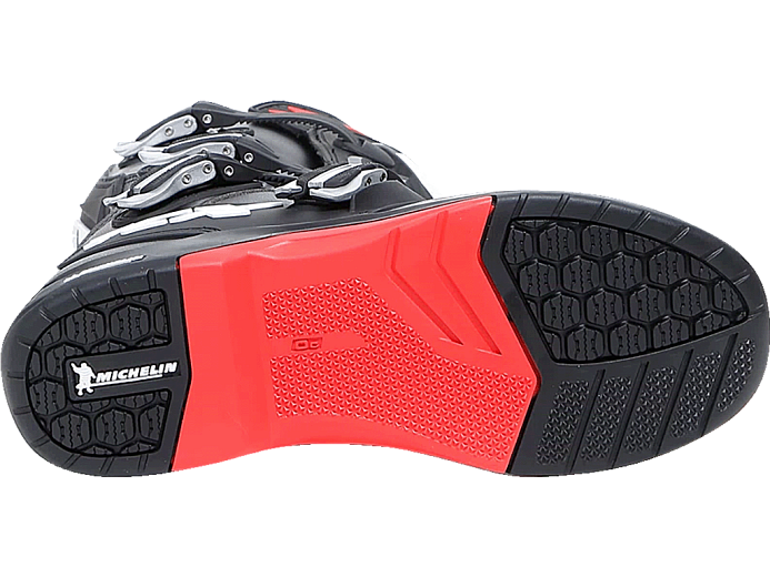 Ботинки X-Helium Michelin® для мотокросса и эндуро оснащены гибридной подошвой Michelin® MX. Максимальный уровень защиты, обеспечивается полиуретановой защитой голени и носка. Подошва Michelin® Hybrid MX имеет особый дизайн для максимального сцепления. Специальный состав, из которого он изготовлен, делает его очень устойчивым к истиранию и разрывам. Верх из микрофибры плотно прилегает к ноге. Обувь застегивается на четыре сменных и регулируемых алюминиевых застежки. Дышащая подкладка Air Tech обеспечивает максимальный комфорт даже в самое теплое время года, сохраняя ноги сухими. Максимальный комфорт при езде обеспечивает съемная анатомическая стелька и набивка из пенополиуретана, материала, способного адаптироваться к форме стопы пилота, благодаря особому «эффекту памяти».