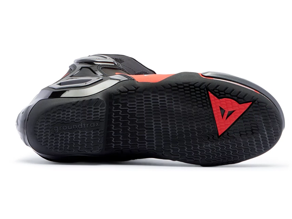 Гоночная подошва Groundtrax - это максимальный контроль подножек, защита от жара двигателя и выпускной системы, Эластичное голенище подходит для голеней любых размеров. Dainese Axial 2 надеваются под гоночный комбинезон и стыкуются со штанинами с помощью липучек. Такая система исключает попадание внутрь мусора, а также дополнительным слоем кожи защищает ногу от повреждений. Они легко затягиваются с помощью системы быстрой шнуровки. Верх сделан из прочного материала D-Stone и мягкой, эластичной микрофибры. Молния расположена на задней поверхности обуви и не мешает контакту ног с мотоциклом.