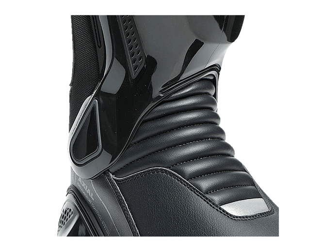 Верх сделан из прочного материала D-Stone и мягкой, эластичной микрофибры. Для вентиляции в жаркую погоду нанесена перфорация. Мотоботы точно настраиваются по ноге системой застёжек. Молния расположена на задней поверхности обуви и не мешает контакту ног с мотоциклом.