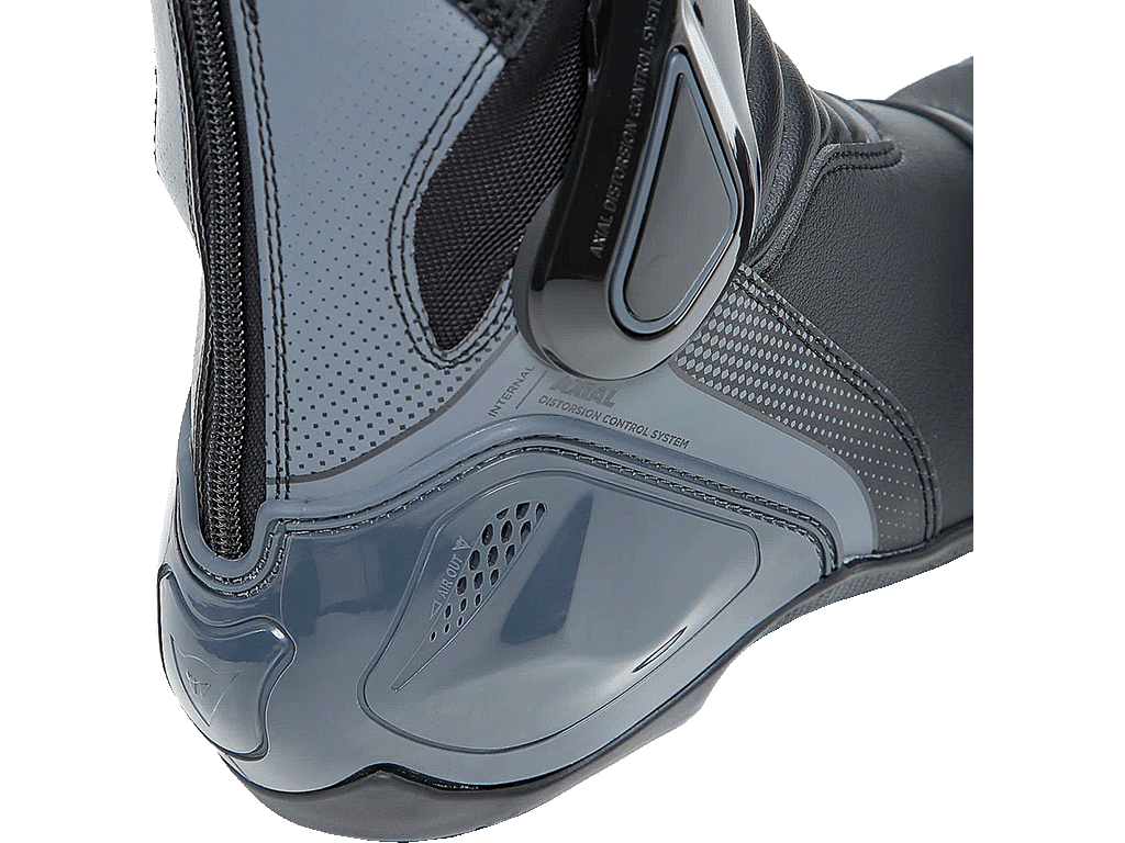 Верх сделан из прочного материала D-Stone и мягкой, эластичной микрофибры. Для вентиляции в жаркую погоду нанесена перфорация. Мотоботы точно настраиваются по ноге системой застёжек. Молния расположена на задней поверхности обуви и не мешает контакту ног с мотоциклом.