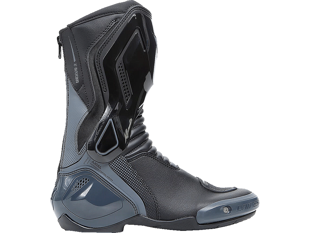 The Dainese Nexus 2 - спортивные мотоботы с высоким уровнем безопасности. Система шарниров - самая надёжная защита суставов. Она позволяет стопе работать по естественной траектории, при этом исключает слишком амплитудные или скручивающие движения. Дополнительно защищают обувь жёсткие нейлоновые вставки и сменные пластиковые слайдеры на ребре стопы.