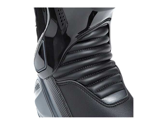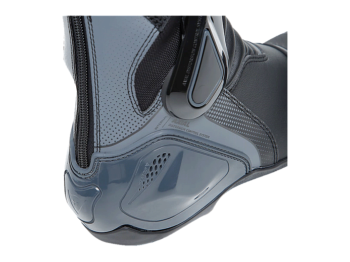 Верх сделан из прочного материала D-Stone и мягкой, эластичной микрофибры. Для вентиляции в жаркую погоду нанесена перфорация. Мотоботы точно настраиваются по ноге системой застёжек. Молния расположена на задней поверхности обуви и не мешает контакту ног с мотоциклом.