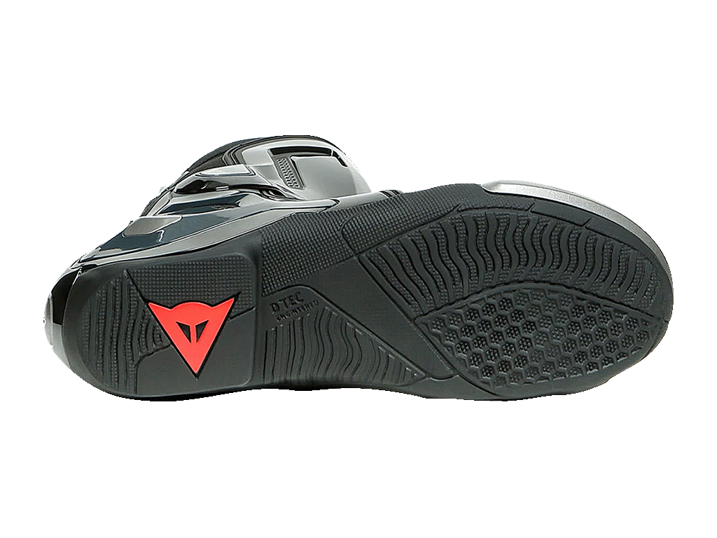 Эта спортивная обувь изготовлена из микрофибры и ткани D-Stone™ с вставками из TPU материала с высоким сцеплением. Практичность и безопасность гарантируются сменными слайдерами из магния, элементами защиты из нейлона, а также эксклюзивной системой D-Axial в TPU, предотвращающей любое скручивание голеностопа. Настоящий чемпион по легкости и производительности, мотообувь имеет внутреннюю фиксирующую ленту, систему быстрого крепления и канализации воздуха, магниевые вставки на внешней стороне и пятке, а также эластичные вставки, повышающие комфорт при езде на мотоцикле. Безопасность и уверенность для максимальной производительности на любой трассе.