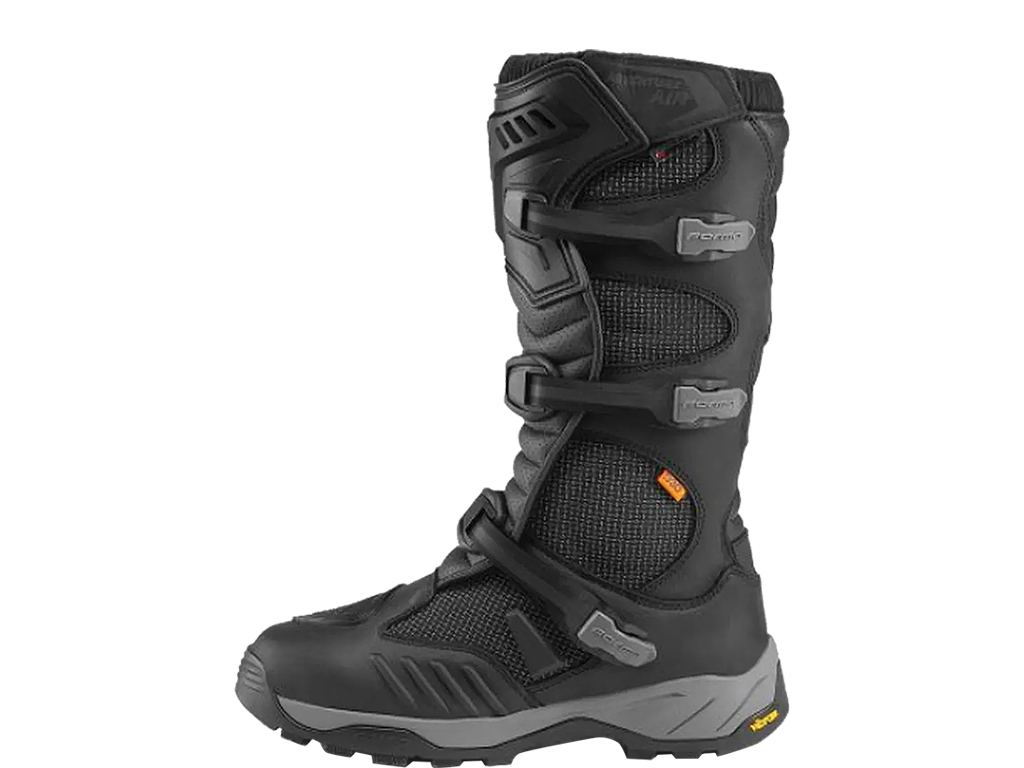 В названии мотобот Forma Adventure Air Dry для туристических эндуро заложено небольшое противоречие. Словом Dry обозначают непромокаемые модели, а Air - продуваемые. Обычно это понятия взаимоисключающие. Но не у Forma Adventure Air Dry. Благодаря мебране Drytex, они не промокают и при этом дышат. А улучшает циркуляцию воздуха слой из сетчатой ткани. Так что можно ездить в жару, периодически попадать в дождь или лужи, и ноги будут сухими. Еще один материал верхней части - прочная промасленная кожа.