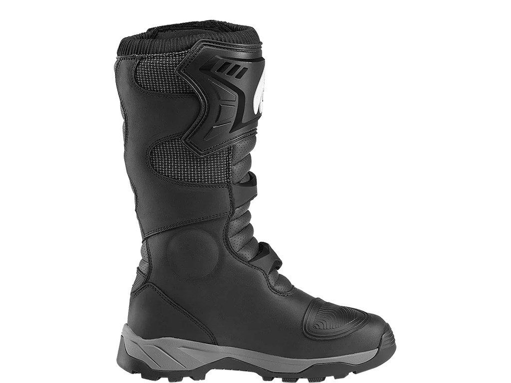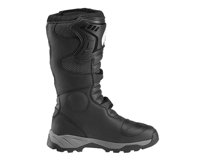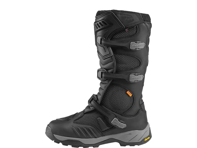 Пластичная и мягкая защита D3O - удобная и безопасная. Для большей надежности она дополнена жесткими вставками. Подошва Vibram с внедорожным протектором хорошо держит на асфальте и на грунте, позволяет даже на скользкой поверхности устойчиво опираться на ноги. Застежки кроссового типа - с мощными пряжками, повредить сложно даже при сильном падении.