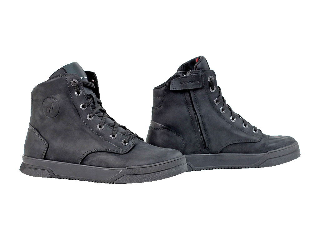 Forma City Dry - классические мотокроссовки с мембраной для городской езды и ходьбы в тёплую и дождливую погоду. Стильные, мягкие, удобные, при этом с защитой. Подходящий вариант, чтобы приехать на мотоцикле на работу или на прогулку и потом весь день ходить, не переобуваясь. Цвета нейтральные, классно выглядят и подходят к самым разным мотоциклам. К тому же они не очень маркие. Шнуровка дополняет внешний вид, а заодно позволяет точно подогнать кроссовок по ноге. Для быстрого надевания и снятия сбоку есть молния.
