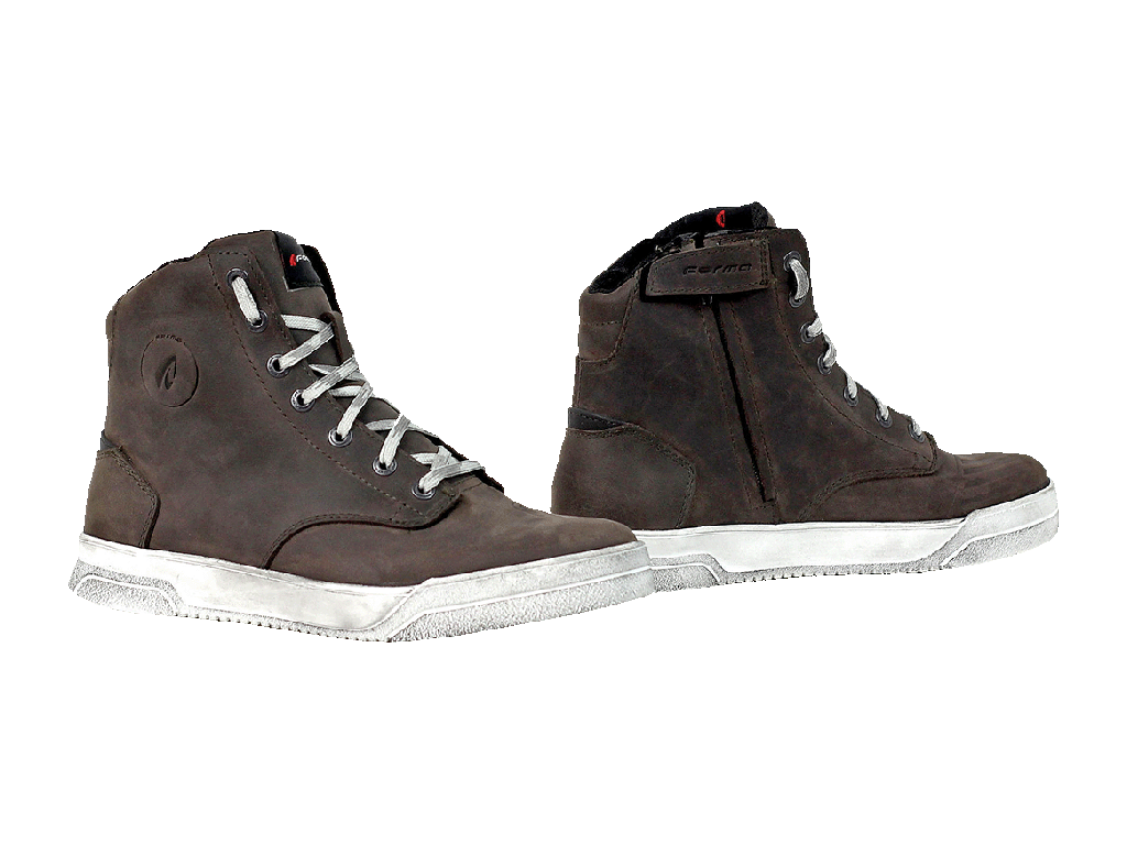 Forma City Dry - классические мотокроссовки с мембраной для городской езды и ходьбы в тёплую и дождливую погоду. Стильные, мягкие, удобные, при этом с защитой. Подходящий вариант, чтобы приехать на мотоцикле на работу или на прогулку и потом весь день ходить, не переобуваясь. Цвета нейтральные, классно выглядят и подходят к самым разным мотоциклам. К тому же они не очень маркие. Шнуровка дополняет внешний вид, а заодно позволяет точно подогнать кроссовок по ноге. Для быстрого надевания и снятия сбоку есть молния.
