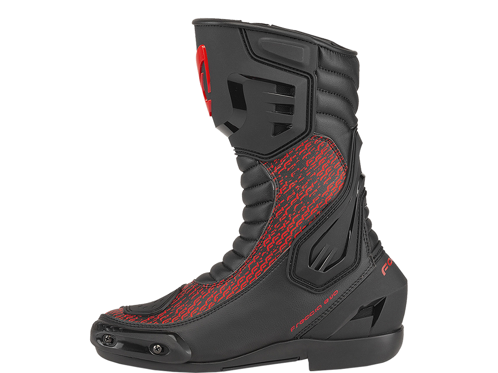 Forma Freccia EVO - дышащие мотоботы с высоким голенищем для спортивной и туристической езды. Агрессивный стиль сочетается с высоким уровнем комфорта и безопасности. Боты подходят не только для дорог, но и для трека. В верхней части - вставки из микрофибры. Мягкая полимерная подкладка с эффектом памяти принимает форму ноги и обеспечивает максимальный комфорт. Двойная система застежки с “молнией” и “липучкой” плотно фиксирует мотоботы на ноге.