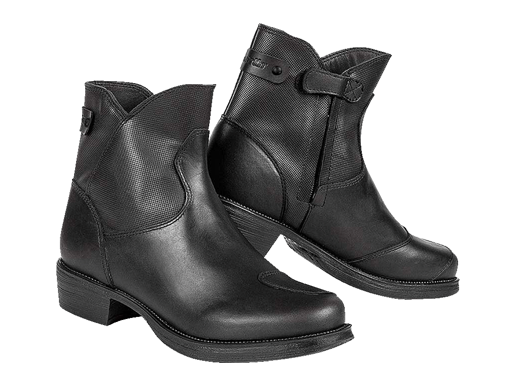 Pearl J — это более классическая версия Pearl Rock. Те же характеристики, но без шипов. Модные женские ботинки, как для мотоцикла, так и вне его. Верх из водоотталкивающей натуральной кожи, водонепроницаемая и дышащая мембрана, защита лодыжек и каблук высотой 4 см — это лишь некоторые из характеристик женских туристических ботинок Pearl J.
