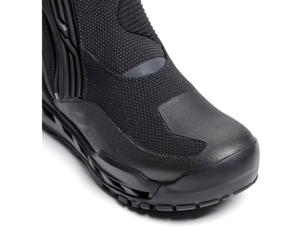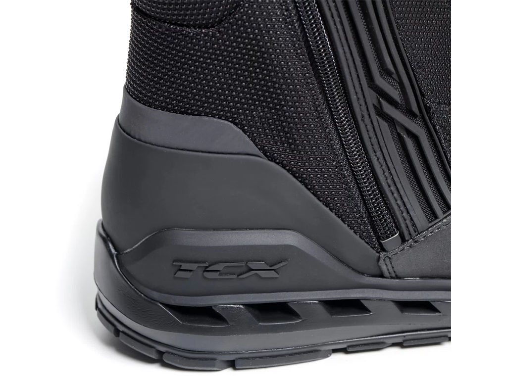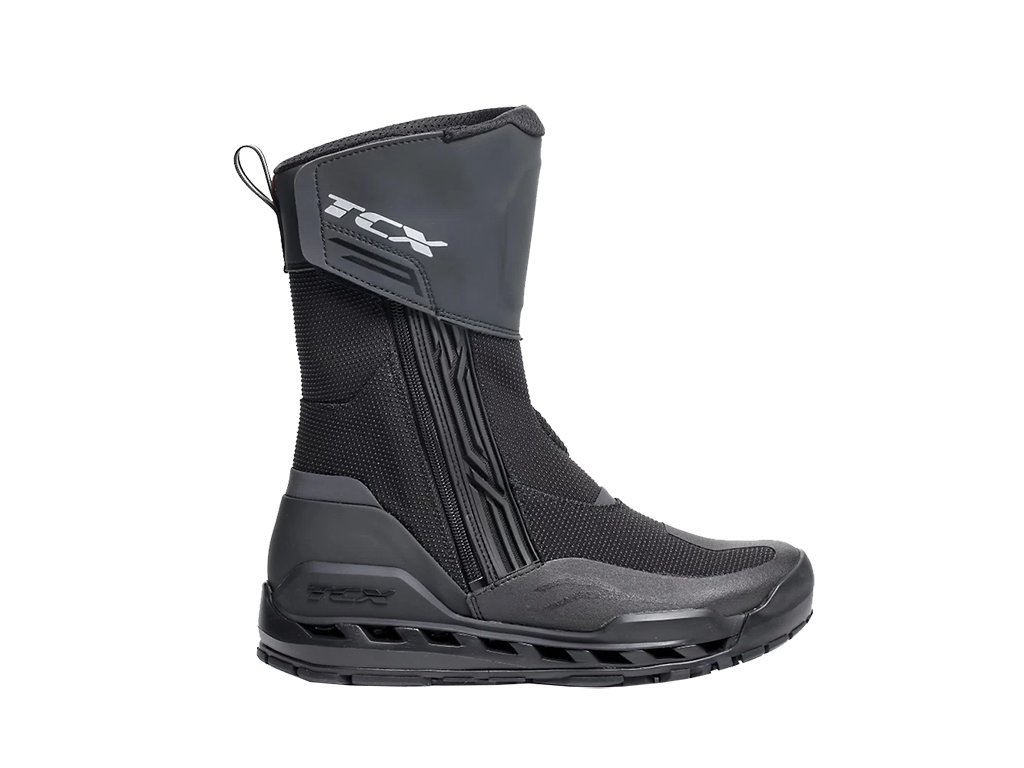 Благодаря точно рассчитанному балансу между усиленными и облегченными областями они одновременно лёгкие, удобные и безопасные. Высокий уровень защиты от ударов и истирания обеспечивают мощные вставки в местах, страдающих при падениях. Щитки из полиуретана прикрывают носок, голень и лодыжку. Если в поездке вам захотелось поставить мотоцикл и прогуляться пешком, нет необходимости переобуваться: благодаря амортизированной конструкции подошвы, в TCX Clima 2 удобно не только ездить, но и ходить.