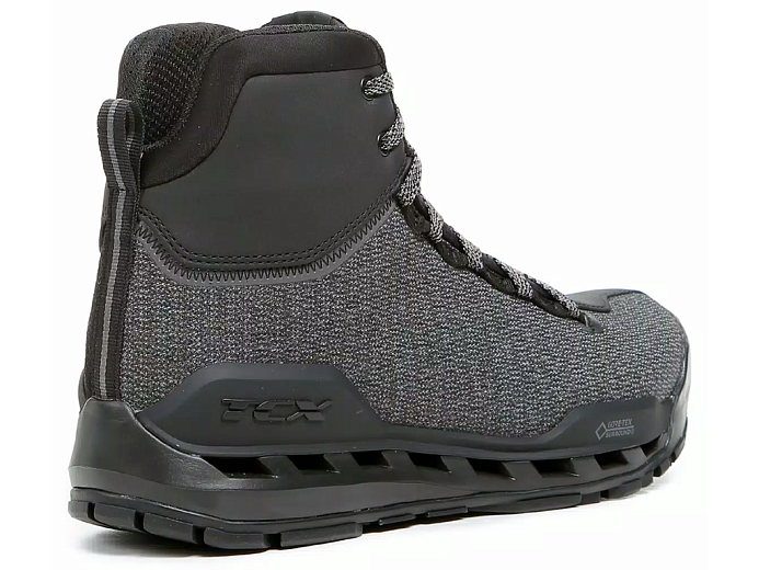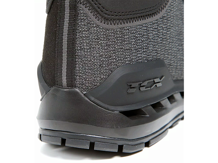 Благодаря точно рассчитанному балансу между усиленными и облегченными областями они одновременно лёгкие, удобные и безопасные. Высокий уровень защиты от ударов и истирания обеспечивают мощные вставки в уязвимых местах. Щитки из полиуретана прикрывают носок, голень и лодыжку. Если в поездке вам захотелось поставить мотоцикл и прогуляться пешком, нет необходимости переобуваться: благодаря амортизированной конструкции подошвы, в TCX Climatrek удобно не только ездить, но и ходить.