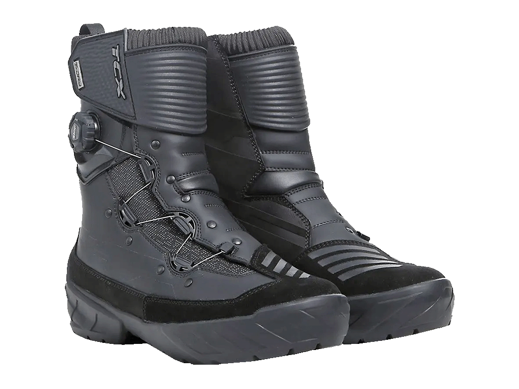 TCX Infinity 3 Mid WP - укороченные непромокаемые мотоботы для езды по дороге и бездорожью в любую погоду. Легко надеваются, снимаются и регулируются с помощью системы быстрой шнуровки A-Top. Если затянуть недостаточно или слишком сильно, ситуацию можно очень быстро исправить одной рукой. Чтобы воспользоваться регулировочным диском, не обязательно даже снимать перчатки и слезать с мотоцикла. Мотобот дополнительно фиксируется на лодыжке усиленной панелью на “липучке”.