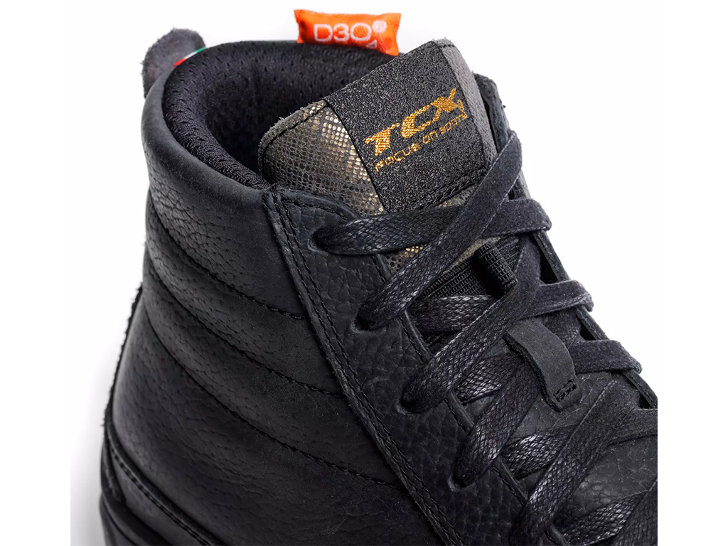 Для защиты лодыжки используется мягкий материал D30, твердеющий при ударе. Таким образом безопасность удается совместить со свободой движений. Для этой же цели в подошве установлена пластина Zplate с повышенной жесткостью на скручивание. Нижняя часть подошвы сделана по технологии Groundtrax. Она даёт хорошее сцепление с подножками и асфальтом даже в дождь.