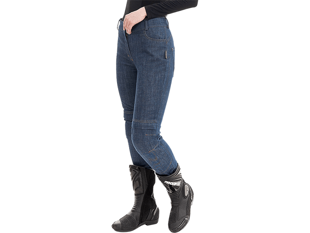 Мотоджинсы Hyperlook Miracle c арамидом и защитными вставками Memory PU в области колен CC PROTECTORS и дополнительными вставки в области бедер, точно не оставят девушек равнодушными. Джинсы Miracle придадут Вашей фигуре красоту и изящество, они превосходно сидят, что несомненно важно для девушек. А гофрированная джинса над коленями способствует комфортной езде и посадке. Арамидная ткань полностью покрывает тазовый отдел , как с передней так и с задней стороны , дополнительно арамидная ткань присутствует в области колен. Женские мотоджинсы с защитой Hyperlook Miracle отличная альтернатива классическим джинсам, которые не имеют защиты и не сохранят Ваше здоровье при падении. Защитные вставки из области таза и колен, можно вынуть в любой момент без особых усилий.