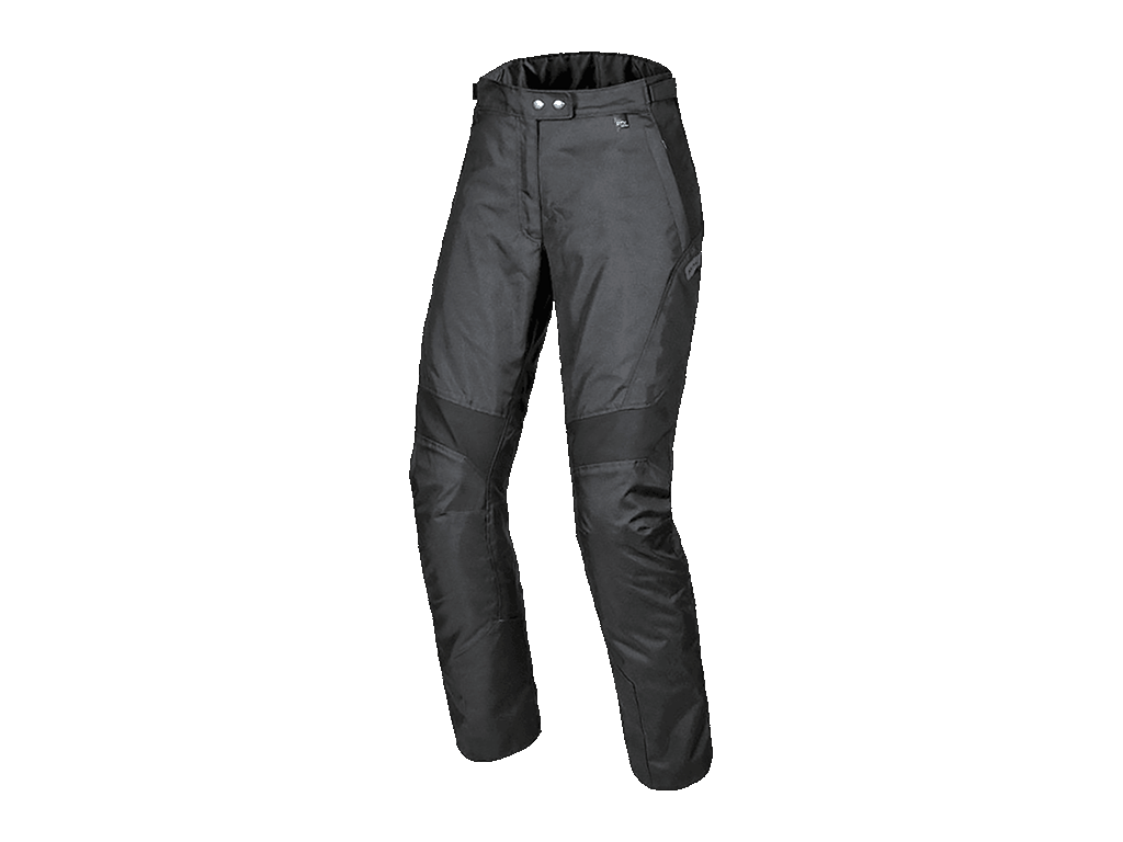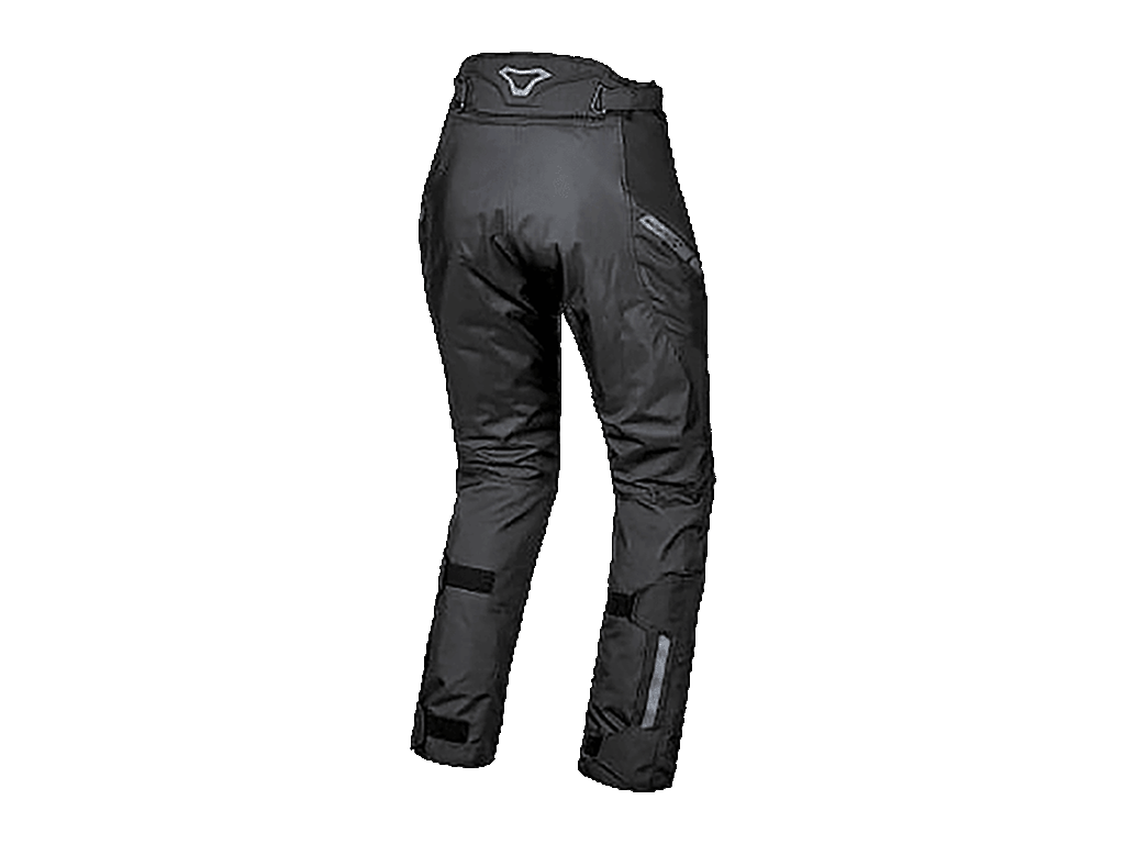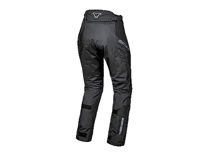 На поясе и бёдрах расположены четыре водонепроницаемых каармана. Нижняя часть штанин усилена вставкой Heat Shield (тепловая защита). Она защищает брюки и ноги от повреждений при контакте с раскалённым глушителем. Для дополнительного комфорта и свободы движений над коленями расположены стретч-вставки, работающие по принципу гармошки. Они сделаны изустойчивого к трению материала с арамидными волокнами. На поясе сзади - молния для стыковки с курткой.