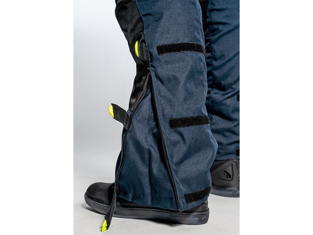 Мотоциклетные брюки не сковывает движения и точно усаживается по фигуре благодаря эластичным вставкам над коленями. Они прошиты по принципу гармошки и легко тянутся. Штаны регулируются ремнями на поясе и голени. За защиту коленей отвечают встроенные наколенники. Они сертифицированы по европейскому стандарту безопасности EN1621 Level 1. Также в FSD Horn есть встроенная защита бедер. При необходимости ее можно быстро снять.