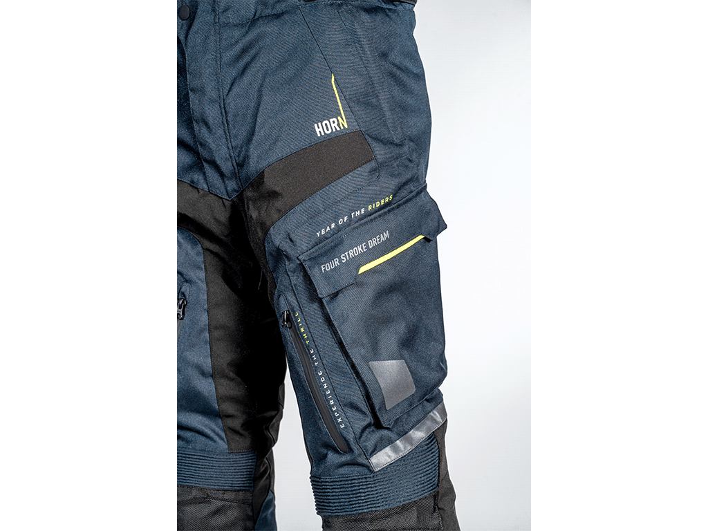 Мотоциклетные брюки не сковывает движения и точно усаживается по фигуре благодаря эластичным вставкам над коленями. Они прошиты по принципу гармошки и легко тянутся. Штаны регулируются ремнями на поясе и голени. За защиту коленей отвечают встроенные наколенники. Они сертифицированы по европейскому стандарту безопасности EN1621 Level 1. Также в FSD Horn есть встроенная защита бедер. При необходимости ее можно быстро снять.