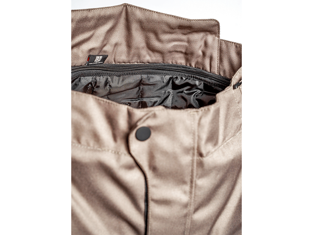 В холод изнутри крепится подкладка с утеплителем. Она надежно держится на молнии, не сползает и не задирается. Удлиненная поясничная зона защищает спину от холода. Чтобы между мотокурткой и штанами не задувал холодный воздух, в задней части нашита стыковочная молния. Она совместима с куртками FSD и некоторых других производителей. Если на вашей куртке нет совместимой или вообще никакой молнии, к ней можно пришить ответную часть (поставляется с брюками).
