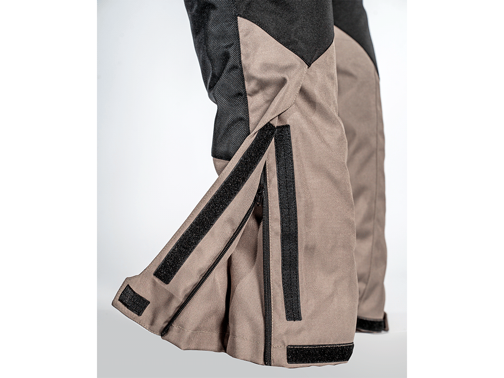 Мотоциклетные брюки не сковывает движения и точно усаживается по фигуре благодаря эластичным вставкам над коленями. Они прошиты по принципу гармошки и легко тянутся. Штаны регулируются ремнями на поясе и голени. За защиту коленей отвечают встроенные наколенники. Они сертифицированы по европейскому стандарту безопасности EN1621 Level 1. Также в FSD Horn есть встроенная защита бедер. При необходимости ее можно быстро снять.