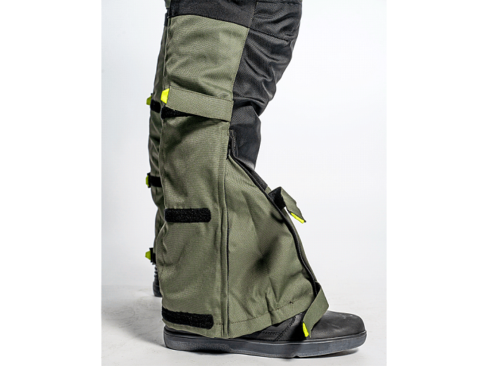 Брюки не мешают двигаться и точно усаживаются по фигуре благодаря эластичным вставкам над коленями. Они прошиты по принципу гармошки и легко тянутся. Штаны регулируются ремнями на поясе и голени. За защиту коленей отвечают встроенные наколенники. Они сертифицированы по европейскому стандарту безопасности EN1621 СE Level 1. Также в FSD Tesla есть встроенная защита бедер. При необходимости ее можно быстро снять.
