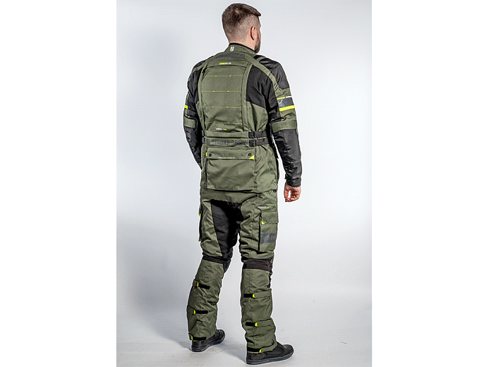 В холод изнутри крепится подкладка с утеплителем. Она надежно держится на молнии, не сползает и не задирается. На случай дождя - еще одна подкладка, непромокаемая. В полностью собранной трехслойной конфигурации куртка выдерживает самую суровую непогоду. Чтобы между штанами и мотокурткой не задувал холодный воздух, в задней части нашита стыковочная молния. Она совместима с куртками FSD и некоторых других производителей. Если на вашей куртке нет совместимой или вообще никакой молнии, к ней можно пришить ответную часть (поставляется с брюками).