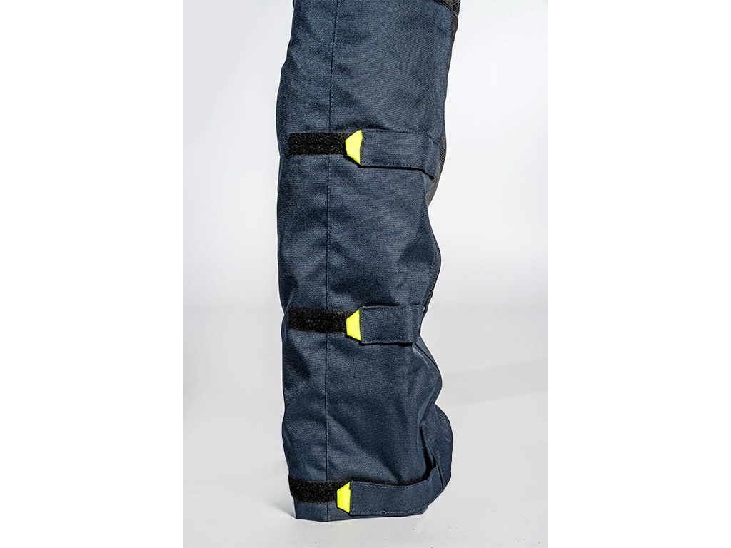 Брюки не мешают двигаться и точно усаживаются по фигуре благодаря эластичным вставкам над коленями. Они прошиты по принципу гармошки и легко тянутся. Штаны регулируются ремнями на поясе и голени. За защиту коленей отвечают встроенные наколенники. Они сертифицированы по европейскому стандарту безопасности EN1621 СE Level 1. Также в FSD Tesla есть встроенная защита бедер. При необходимости ее можно быстро снять.