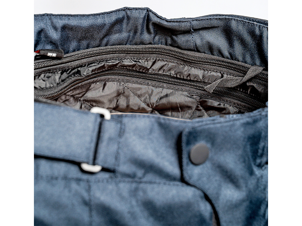В холод изнутри крепится подкладка с утеплителем. Она надежно держится на молнии, не сползает и не задирается. На случай дождя - еще одна подкладка, непромокаемая. В полностью собранной трехслойной конфигурации куртка выдерживает самую суровую непогоду. Чтобы между штанами и мотокурткой не задувал холодный воздух, в задней части нашита стыковочная молния. Она совместима с куртками FSD и некоторых других производителей. Если на вашей куртке нет совместимой или вообще никакой молнии, к ней можно пришить ответную часть (поставляется с брюками).