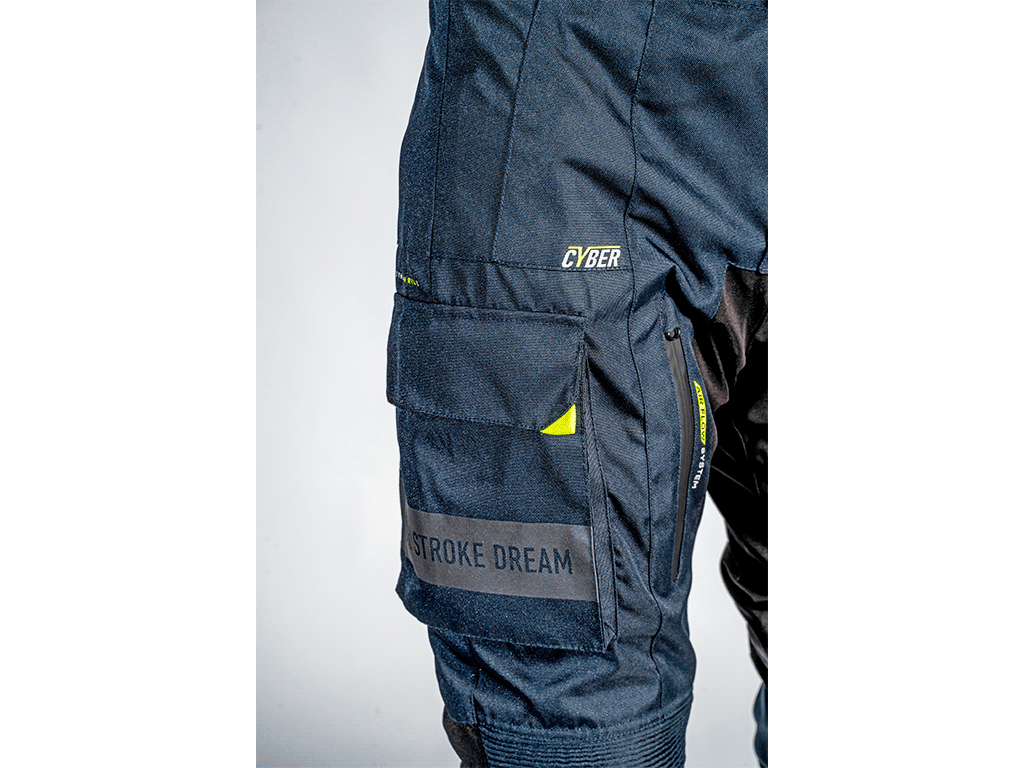 Брюки не мешают двигаться и точно усаживаются по фигуре благодаря эластичным вставкам над коленями. Они прошиты по принципу гармошки и легко тянутся. Штаны регулируются ремнями на поясе и голени. За защиту коленей отвечают встроенные наколенники. Они сертифицированы по европейскому стандарту безопасности EN1621 СE Level 1. Также в FSD Tesla есть встроенная защита бедер. При необходимости ее можно быстро снять.