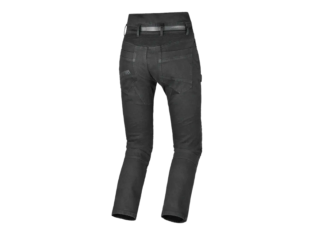 Джинсы совместимы с сумкой на бедро MULB-1 и модульным стандартом P.A.L.S. Задняя часть высокая, чтобы между курткой и брюками не задувал ветер. Также щель можно полностью убрать, состегнув верхнюю и нижнюю части экипировки с помощью стыковочной системы Macna Back Connect.