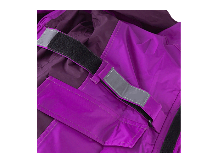 Дождевик имеет регулировки на запястьях, предплечьях, лодыжках, что обеспечивает дополнительную защиту от влаги и уменьшает парусность при быстрой езде.