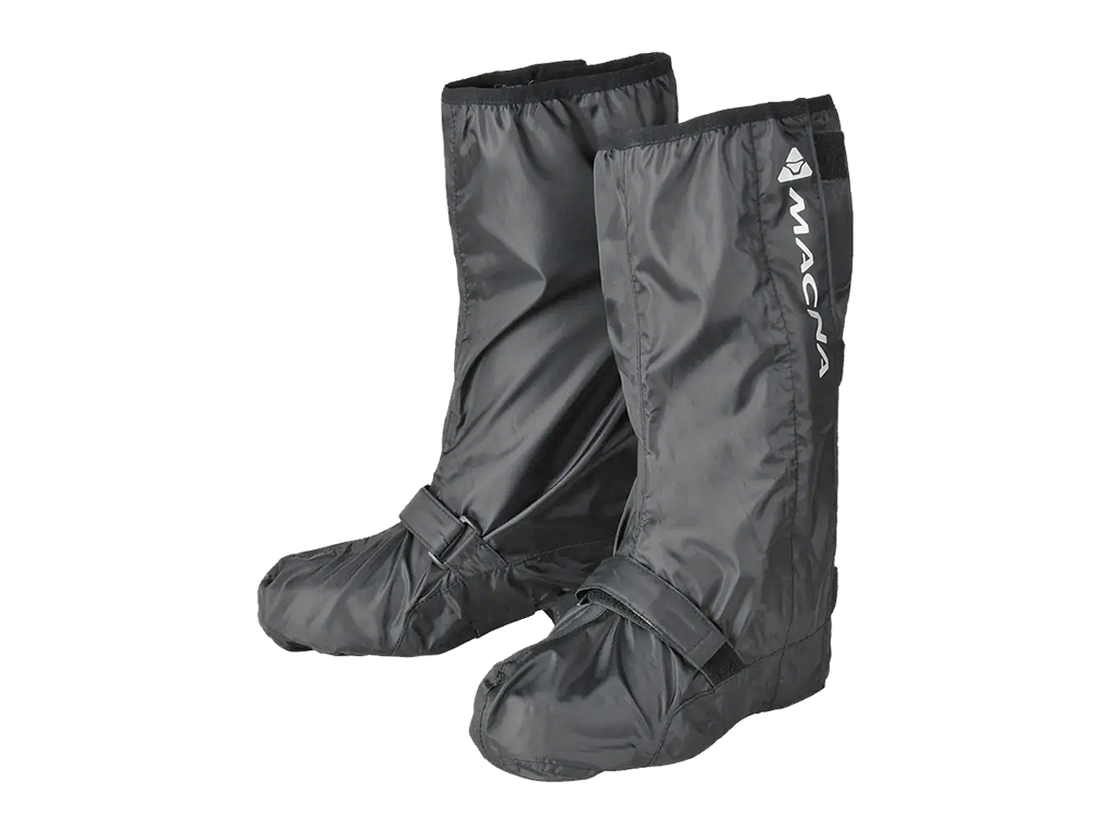Дождевые мотобахилы Macna Lair сделаны из водонепроницаемой ткани и надеваются поверх обуви. Они незаменимы, если у вас в гардеробе непромокаемых мотобот. Также пригодятся в длительном путешествии под проливным дождём, когда даже мембранная обувь начинает подтекать.