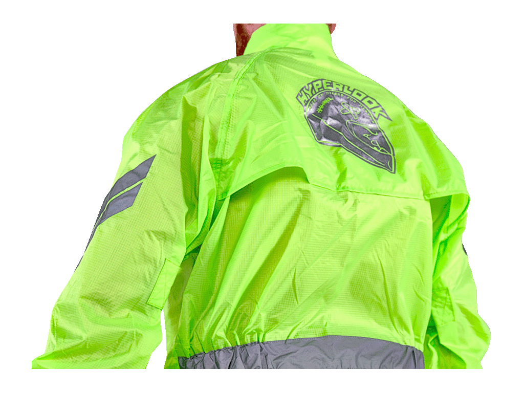 Hyperlook Titan легкий, прочный, удобный раздельный дождевик, незаменимый аксессуар как в путешествии так и в поездке по городу. Дождевик сшит из прочного 100% полиэстера, все швы проклеены термоизоляционной лентой, так же дождевик имеет вентиляционные отверстия для циркуляции воздуха в области лопаток. Дождевик Hyperlook Titan продуман до мелочей, армированные нити, регулировочные стропы предплечья и кисти, регулировка резинки по длине ботинка, светоотражающие элементы и логотип компании Hyperlook на спине, который значительно повысит Вашу пассивную безопасность при езде ночью. Но главной особенностью дождевика Hyperlook Titan является то, что есть возможность пристегнуть куртку к штанам.