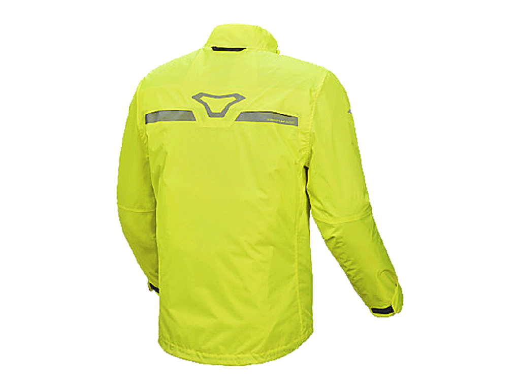 В дождливую погоду видимость значительно ухудшается, особенно ночью. Чтобы мотоциклист был более заметным в свете фар, на куртке со всех сторон есть ламинированные светоотражающие элементы. На внешней стороне воротника расположена прочная текстильная петля. За неё куртку удобно подвешивать при просушивании. При хранении и перевозке дождевик компактно складывается в небольшой мешочек с сетчатыми элементами. Через них вода стекает и испаряется, а дождевик сохнет даже упакованном состоянии.