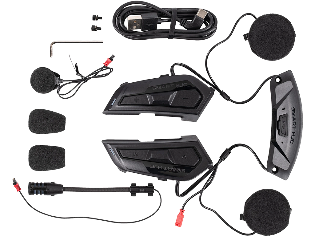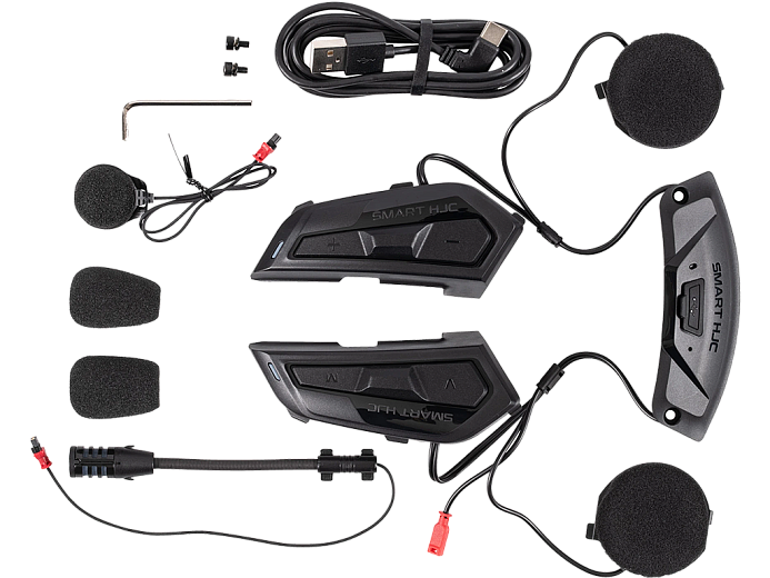 Фирменные гарнитуры HJC совместимы только со шлемами этого производителя, причем не со всеми. Модель Smart HJC 50B, как и другие южнокорейские гарнитуры второго поколения, практически не выступает за габариты шлема. Она не мешается, не ухудшает аэродинамику и развесовку, легко устанавливается в специальные ниши. В этом ее главное преимущество перед универсальными гарнитурами, совместимыми со всеми шлемами. Чтобы добиться оптимальной компоновки, центральный блок инженеры разделили на две части. Одна расположена с левой стороны. Там водителю проще нажимать на кнопки. Более крупная часть прячется в затылочной части шлема.