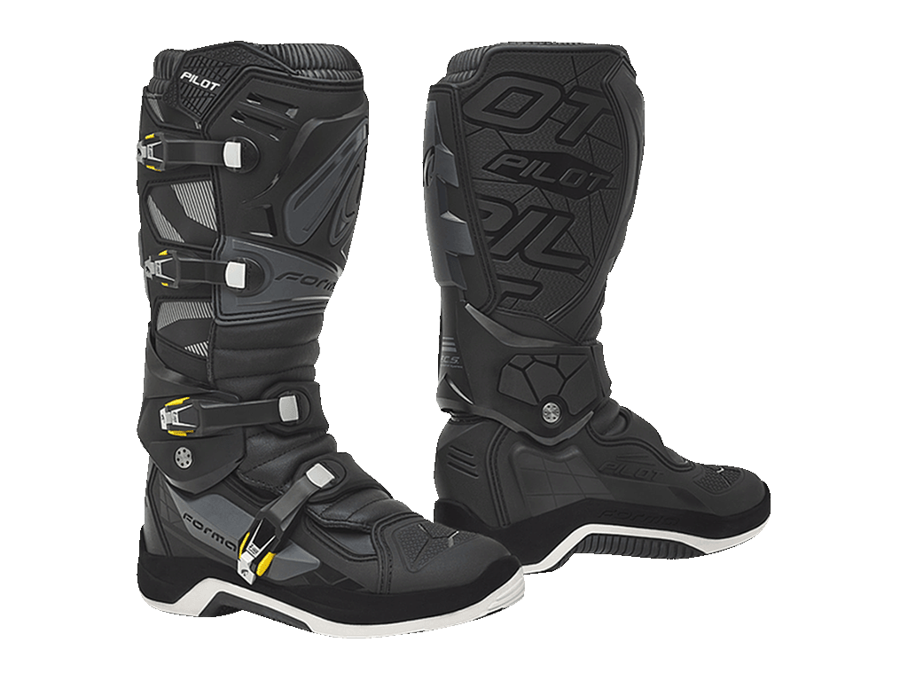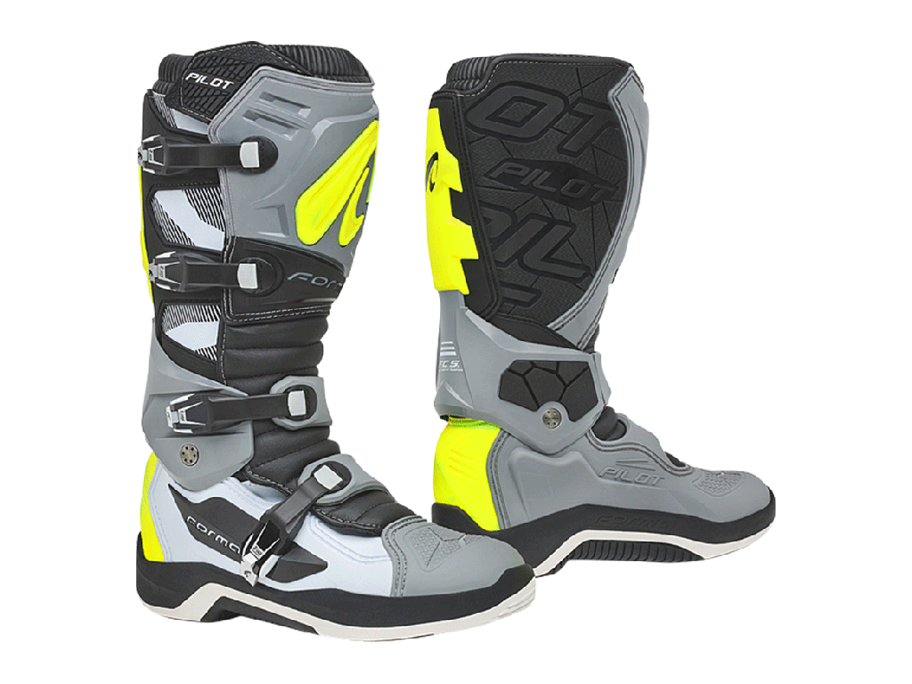 Кроссовые мотоботы Forma Pilot разработаны для занятий мотокроссом, эндуро и езды по бездорожью разной интенсивности. Отличаются мощной защитой. Для оптимального сочетания защиты и комфорта в районе голеностопного сустава установлена система шарниров. Она позволяет стопе двигаться по естественной траектории, при этом предохраняет от чрезмерного разгибания, сгибания и скручивания, приводящих к травмам. Также нога защищена от ударов и сдавливаний, возникающих при падении, пластиковыми и металлическими элементами.